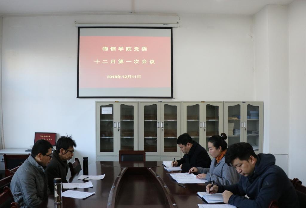 2018年12月11日上午9:30,院党委在四号楼一层多功能会议室召开了十二月份第一次会议。全体党委委员参加了会议。会议由院党委书记陈向波主持。