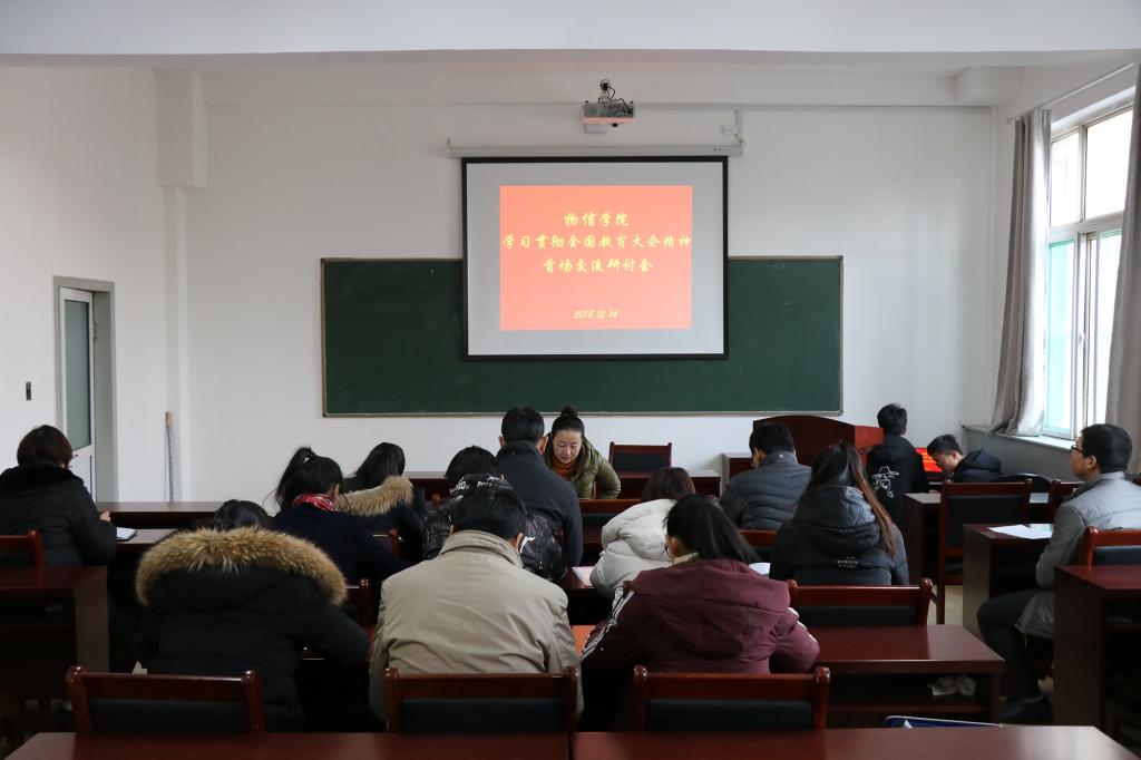 为进一步深入学习贯彻全国教育大会精神,2018年12月14日上午9:00,海博论坛 在四号楼二层多功能会议室召开学习贯彻全国教育大会精神首场交流研讨会。各学习研讨小组代表参加了交流研讨会,会议由院党委副书记王玮主持。