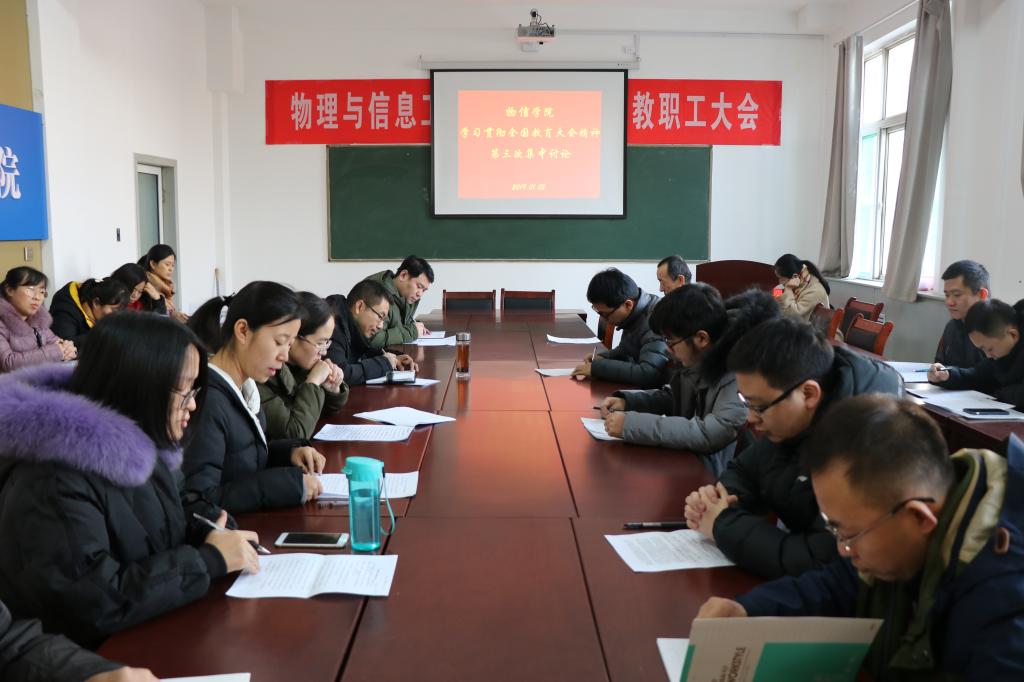 2019年1月2日下午3:00,海博论坛 在四号楼二层多功能会议室召开了学习贯彻全国教育大会精神第二次、第三次集中讨论会议。12个小组的24名教师代表分别代表本组参加学院第二次和第三次集中讨论会议,会议由院党委书记陈向波主持。